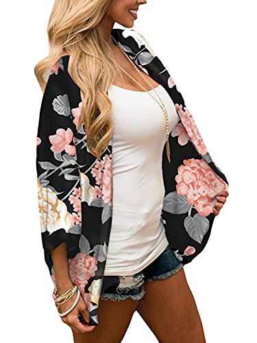 FaroDor Women’s Short Sleeve Floral Kimono Cardigan Chiffon Loose Beach Wear Cover Up Tops